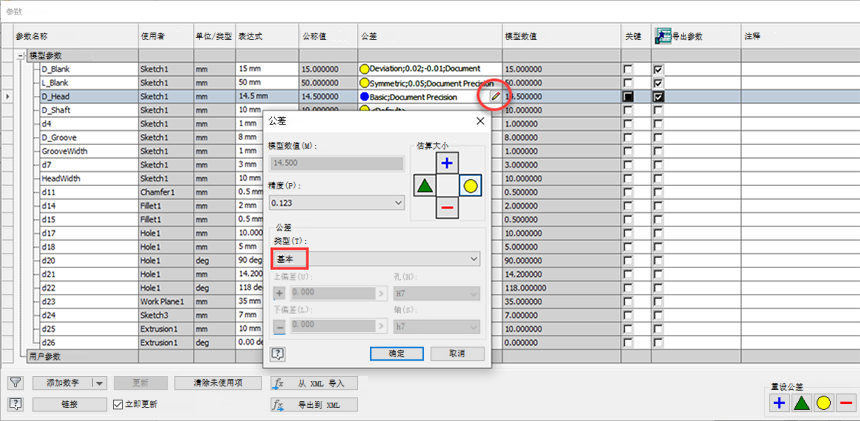 基本公差:参数编辑器提供了对基本公差的访问,可以升级基本公差并使用模型中的三维标注进行同步,以及在图形中检索。
