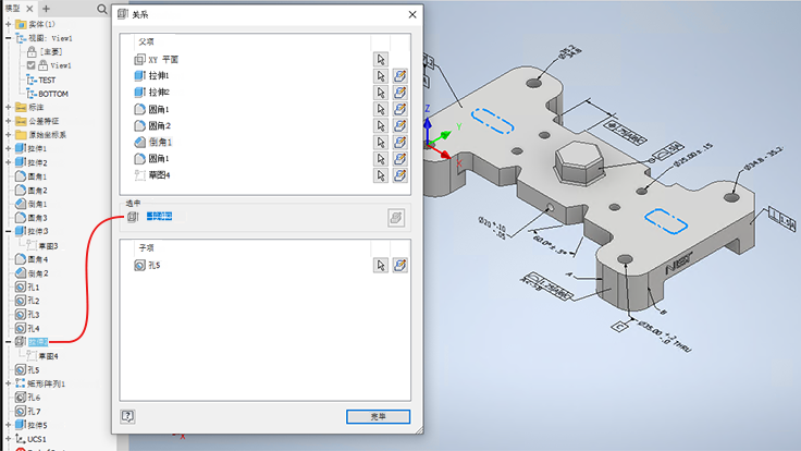 投影几何图元:现在,可以选择草图中所有解除引用(或出现问题)的投影几何图元,以便可以快速删除或查看该几何图元以进行修复。