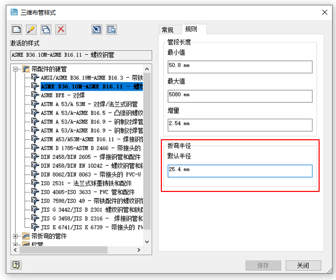 现在,所有默认的“折弯半径”值都将保存到导出的三维布管样式中。三维布管样式中的折弯半径可以导出为 XML 文件,也可以导入。