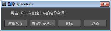 任何拥有 spaceJunk 名称空间的节点现在都没有指定的名称空间。即,: 指定默认的名称空间,-f 标志表示强制执行命令,即使其会产生命名冲突也是如此。因此,名称相同的节点将被指定递增的数字。
