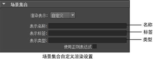 渲染时,Maya 将从集合层次中最上层的集合引用节点开始,在各个集合引用中搜索与指定“名称”(Name)“标签”(Label)“类型”(Type)搜索条件匹配的表示。如果发现匹配表示,该表示即会变成活动状态。然后,Maya 将搜索因上次激活而载入场景中的任何生成的集合引用。请参见场景集合自定义渲染设置示例