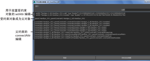 在集合引用节点或集合引用成员上创建约束时,将对这些对象应用添加连接编辑和建立父子关系编辑。根据所创建约束的类型,可能会对这些对象应用多个连接编辑。