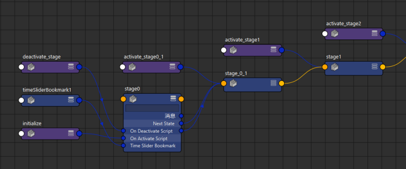 阶段的大多数工作都在其连接的脚本节点中进行。在上述两个示例文件中,这些文件通常命名为“activate_stage#”或“deactivate_stage#”。还有许多辅助对象脚本未连接到阶段,但阶段通常会调用它们来执行一些常见任务。一些示例包括: