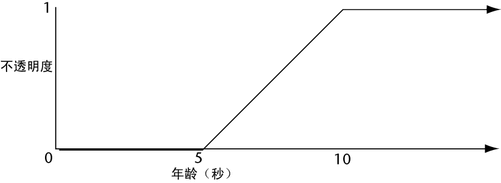 这会在对象年龄从 5 秒增加到 10 时将“不透明度”(Opacity)属性从 0 线性增加到 1。