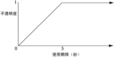 如下表所示,不透明度在对象年龄的前 5 秒中以线性增量增加。在指定的 0 到 5 秒年龄范围内的中点处,不透明度为 0.5。在 0 和 5 秒的 3/4 处,不透明度为 0.75。在对象年龄的 5 秒处,不透明度为 1。5 秒后,不透明度将保持为 1。