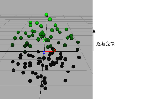 这将根据粒子的位置在黑色到绿色范围内为粒子着色。