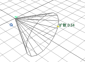 在各个方向上拖动点图标,直到看到表示“扩散”(Spread)角度的圆锥体。在开始拖动点时,会在工作区中显示一条线,指示可以拖动的方向。
