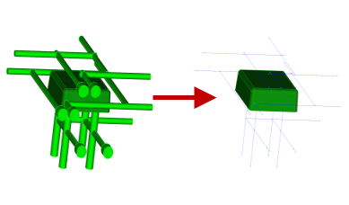 通过先提取 3D 主体的中心线曲线,然后沿曲线构建柱体单元,将 3D 主体转换为柱体单元。创建的曲线会自动继承在 CAD 设计中指定的管道直径,以及“管道”特性。