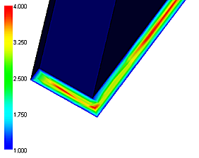 报告 3D 零件中网格细化不足的求解器消息可使用节点层数结果进行检查。