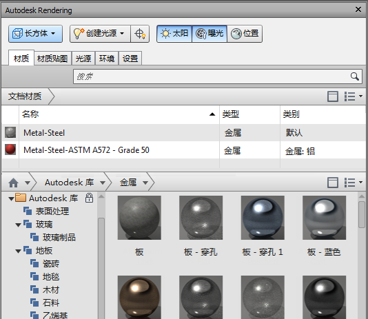 材质库是材质及相关资源的集合。部分库是由 Autodesk 提供的,其他库则是由用户创建的。