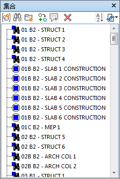 可以使用“集合”窗口中的按钮在 Navisworks 文件中创建和管理选择集与搜索集。
