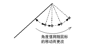 选择一条直线。 从直线的已选端到光标将会显示橡皮条角度。当您移动鼠标光标时,橡皮条角度也会改变: