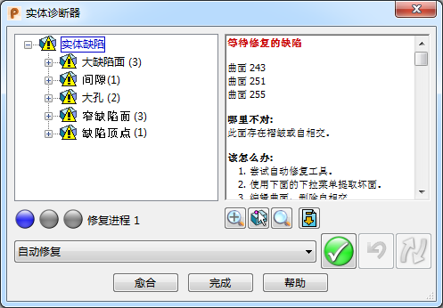 单击“实体工具”选项卡 >“修复”面板 >“实体诊断器”。
