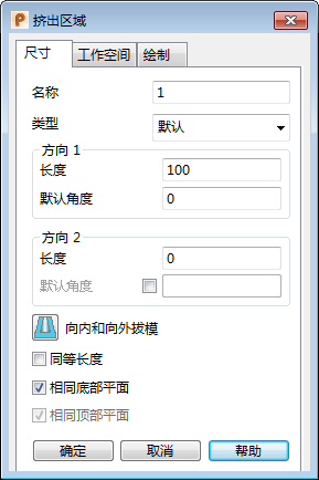 使用“工作空间”和“绘制”选项卡的方式与“挤出”对话框上相应选项卡的方式相同。