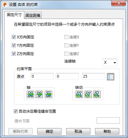 从特征上下文菜单中选择“约束缩放”。系统将显示“设置特征约束”对话框: