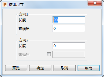 方向 1 - 长度 - 这是挤出长度。如果“方向 2”下的“长度”值不为零,则挤出长度可以为零。