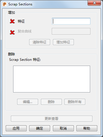 删除 - 从“Scrap Section 特征”列表中删除已选 Scrap Section。