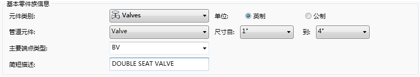 - 在“基本零件族信息”下,单击一种元件类别(例如:阀)。