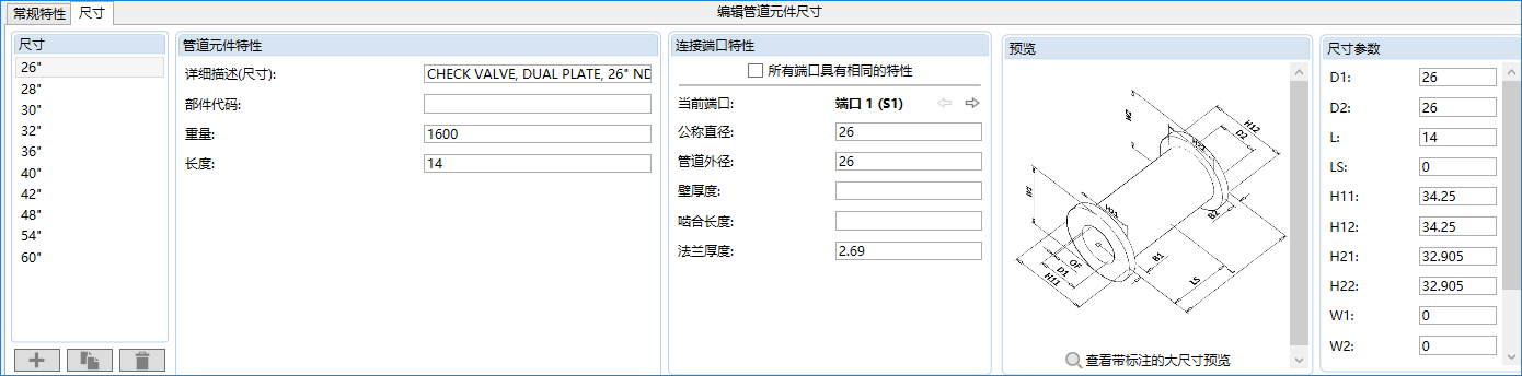 - 复制“尺寸”列表中选定尺寸的特性和标注。在为新尺寸指定唯一的“公称直径”之前,新尺寸会列为未定义。