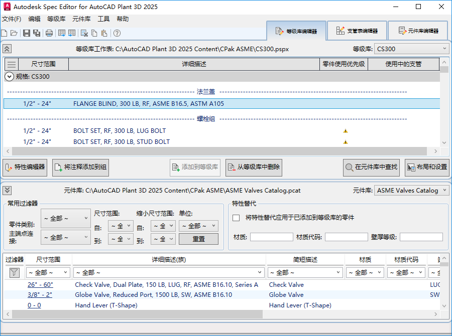 - 可以使用“明细表”选项卡(等级库特性编辑器)修改等级库中的尺寸范围。