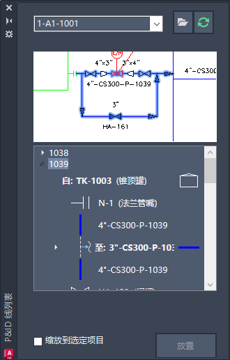 对于页间连接符,此选项使您可以直接在“P&ID 线列表”中查看 P&ID 详细信息。