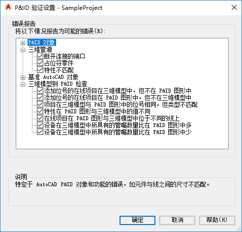 指定要标记的 Plant 3D 错误类型的步骤(仅限于 Plant 3D)