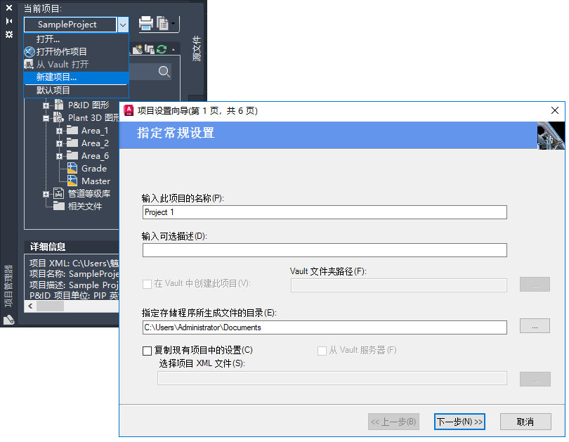 第一次启动程序时,程序会将默认项目设置为当前项目。根据具体的要求,您可以修改该项目,或者创建新项目。
