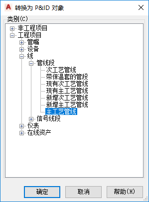 显示类别列表。单击要将 AutoCAD 对象转换为的类别定义。