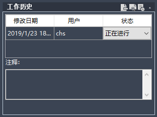 您可以在项目管理器的“工作历史”区域中输入任意图形的工作历史状态和注释。