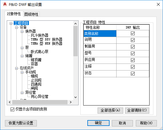 只有在项目打开时,才可设置 P&ID DWF 输出设置。