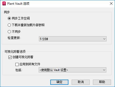 有关 Autodesk Vault 联机帮助,请参阅“配置可视化附着”选项。