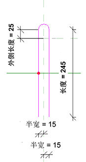 6. 使用两条线和在垂直参照平面居中的圆弧绘制循环路径。投影到墙外侧的循环必须位于水平参照平面上方。墙内的端点会延伸到水平参照平面的下方。