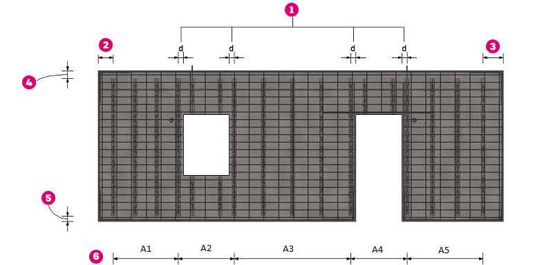 与针对实体墙一样,可以定义边缘钢筋。它基于每个双壁壳的等高线。当放置边缘钢筋时,请遵循以下规则: