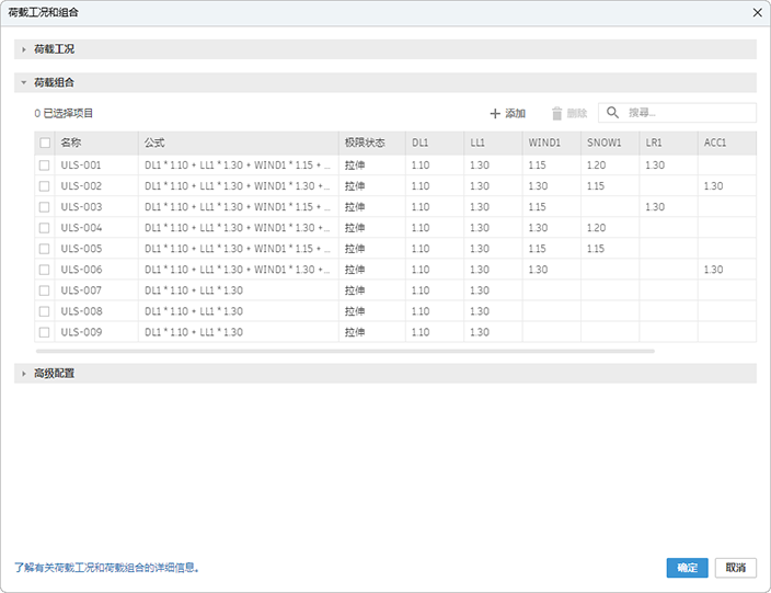 在“荷载组合”表的“极限状态”列中,选择“正常使用”或“极限”。将荷载组合状态设置为正常使用,反映了结构在正常或预期荷载下的性能(变形、振动等),而极限状态则基于结构安全抵抗极端或分解荷载而不失效(屈曲、压裂等)的总承载能力。