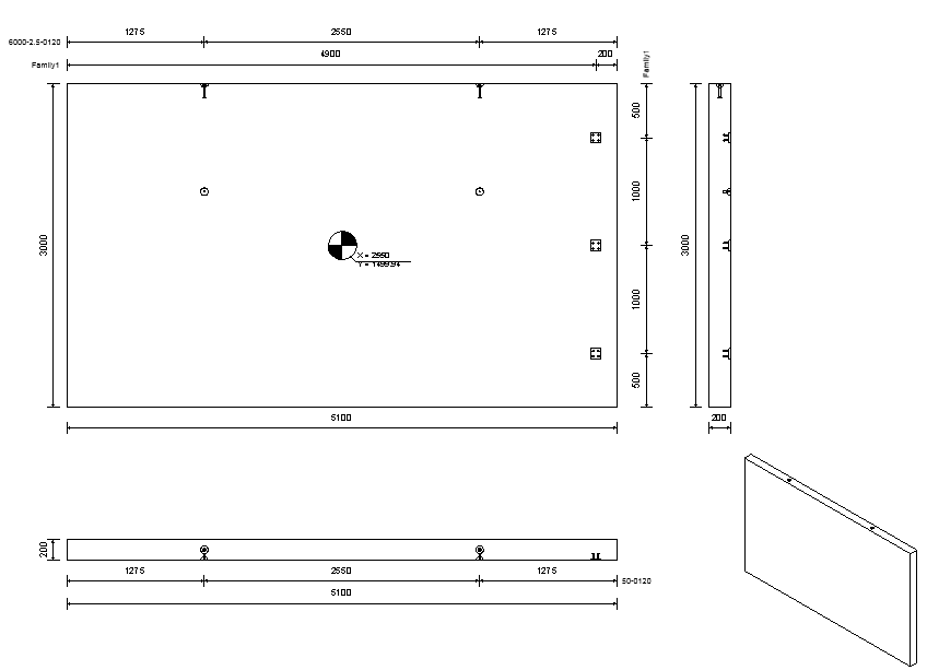 2. 将具有尺寸标注的锚板加载到族中,并将三个实例放置在族主体的顶面上。