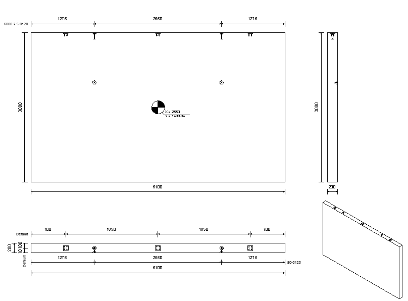 在俯视图和前视图中,仅会对板(无锚固件)进行尺寸标注,因为在这些视图中仅锚固件的圆形面可见,从而不会为尺寸标注提供任何参照。