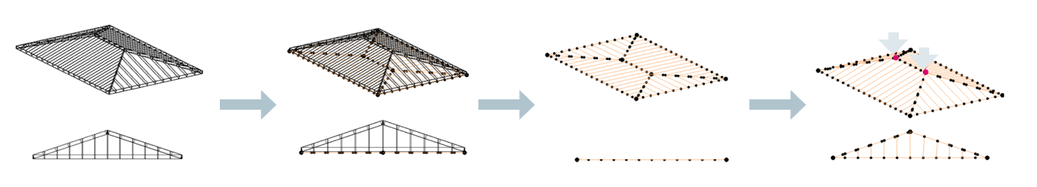 Physical to Analytical for Buildings 2025.2 可自动为选定的物理结构图元创建分析模型。在此过程中,屋顶构件图元的分析表示将作为独立图元对齐到轴网和标高,而忽略对此类图元组进行特征化的特性。 在这种情况下,最佳方法是展平屋顶的图元: