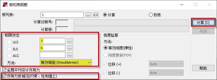 转到“板和壳钢筋”对话框,并在“限制状态”区域中确保已设置以下选项: