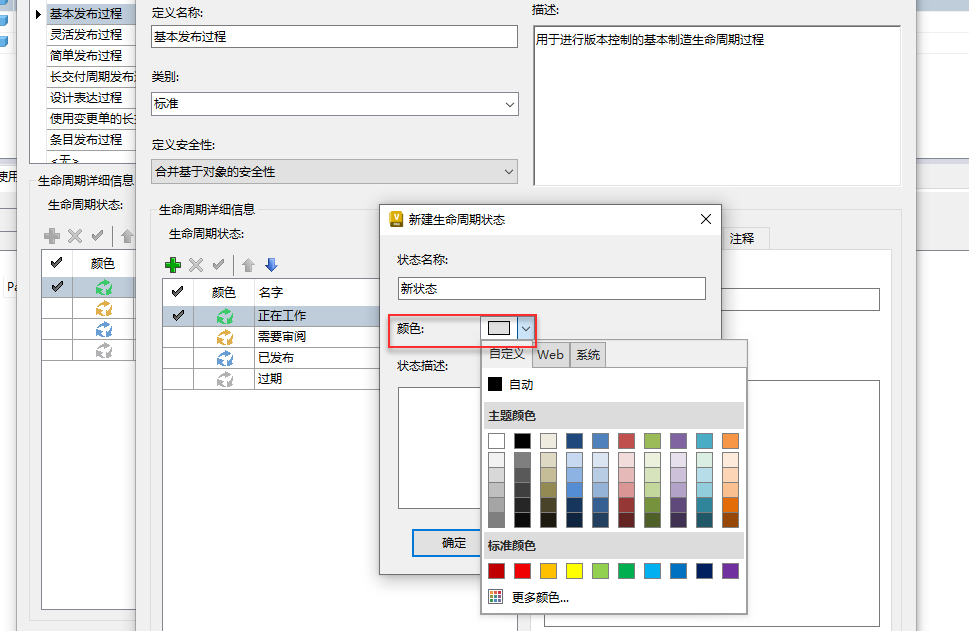 增强了生命周期定义设置,允许进行颜色自定义以指示生命周期状态。您现在可以在所有客户端和用户界面中通过颜色轻松识别生命周期状态。