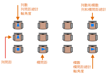 在選取要重複的物件 (稱為來源物件) 之後,您可以選擇排列陣列。陣列有三種類型: