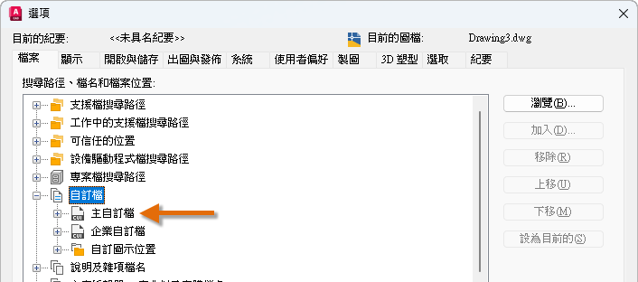 自訂 (CUI / CUIx) 檔會定義使用者介面元素,例如快速存取工具列 (QAT)、功能區面板和頁籤、選項板、「典型」工具列和下拉式功能表。根據您從中移轉的先前版本,「移轉自訂設定」公用程式會尋找「主自訂檔」設定指定的 CUI 或 CUIx 檔。除了載入主 CUI/CUIx 檔的局部自訂檔以外,也會移轉主自訂檔。