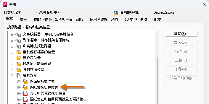 圖面樣板 (DWT) 檔可用於建立新圖面。使用 DWT 檔建立的圖面包含 DWT 檔中定義的所有型式和圖面物件。舊版本的自訂 DWT 檔會移轉至其移轉之版本之後命名的子資料夾,子資料夾的命名慣例為「產品名稱樣板」。產品名稱樣板子資料夾會建立於「圖面樣板檔位置」設定所定義的資料夾中。