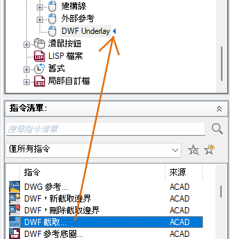 在「指令清單」窗格中,將要加入的指令拖曳至「<