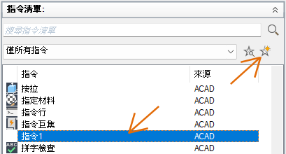 篩選清單以便只展示已加入至載入之自訂檔的使用者定義指令。