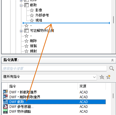 使用自訂使用者介面 (CUI) 編輯器建立、編輯或移除指令。您也可以將新指令加入下拉式功能表、工具列和功能區面板,或進行複製以顯示在多個位置。