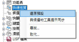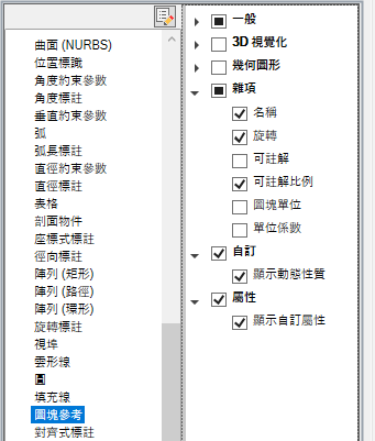 如果已勾選某個物件類型,在選取相同類型的物件時,以及 QPMODE 設定為 2 且 PICKFIRST 開啟時,則會在「快速性質」選項板上顯示該物件類型的性質。清除物件類型旁邊的勾選標記可以從「快速性質」選項板移除所選取的物件類型。