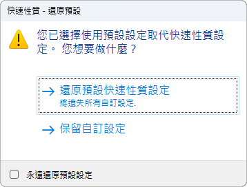 如果已勾選「自訂與屬性」品類,動態的性質和屬性圖塊會顯示在「快速性質」選項板。