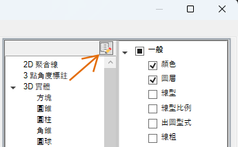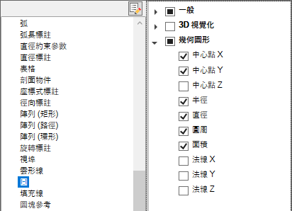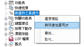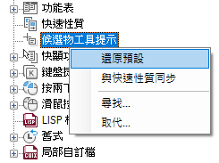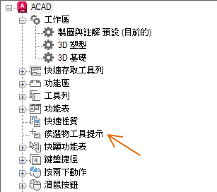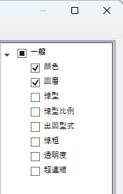 如果勾選了某個性質,則在圖面視窗中將游標置於所選物件類型的一個物件上時,會在候選物工具提示上顯示該性質。清除性質旁邊的勾選標記可以移除所選物件類型的性質。