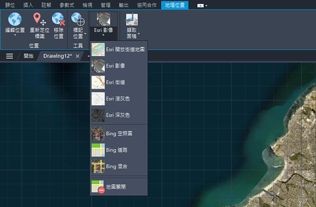 有五個新的 Esri 地圖可用於為圖面指定地理位置資訊。