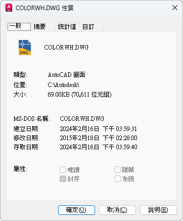 指示此檔案是系統檔案。圖面不能有「系統」屬性設定。